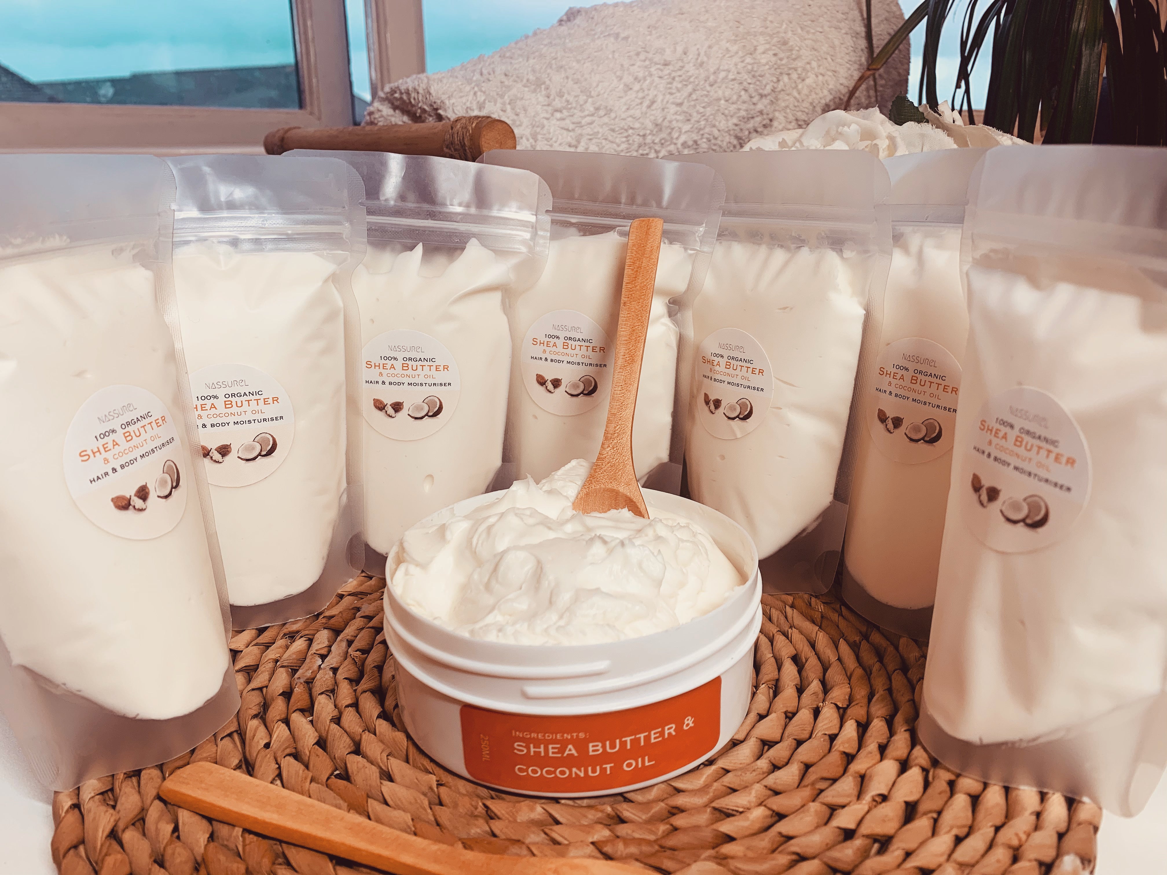 Expect a warming, nutty scent and indulgently creamy texture from our all-natural 100% Organic Shea Butter infused with coconut oil for that extra dose of ultra-rich hydration. Skin and hair are left feeling moisturised for up to 48 hours. Suitable for a variety of skin types and conditions.